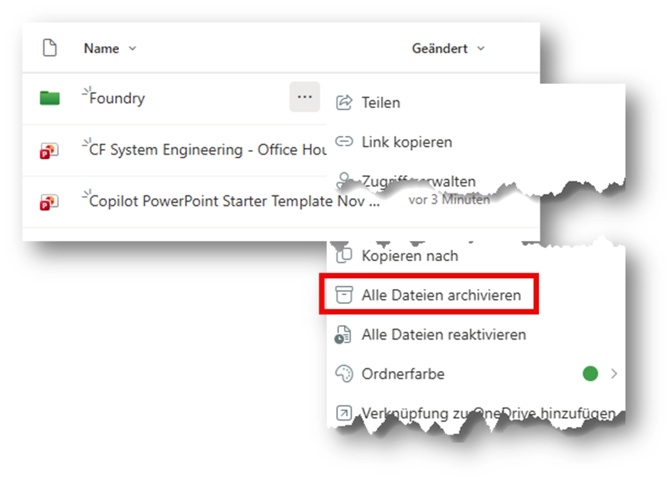 Genau hier kommt SharePoint File Level Archive ins Spiel. Die Funktion ermöglicht es, einzelne Dateien oder Ordner – aus dem aktiven Speicher zu verschieben, ohne sie einfach zu löschen. Der große Vorteil: Archivierte Inhalte tauchen nicht mehr in der allgemeinen Suche auf und damit auch nicht mehr in Copilot. Gleichzeitig sinken die Speicherkosten für Archivierte Dateien um 75%. Die Reaktivierungskosten hat Microsoft schon letztes Jahr gestrichen (Quelle: Microsoft 365 Archive Eliminates Reactivation Fees by March 31, 2025).